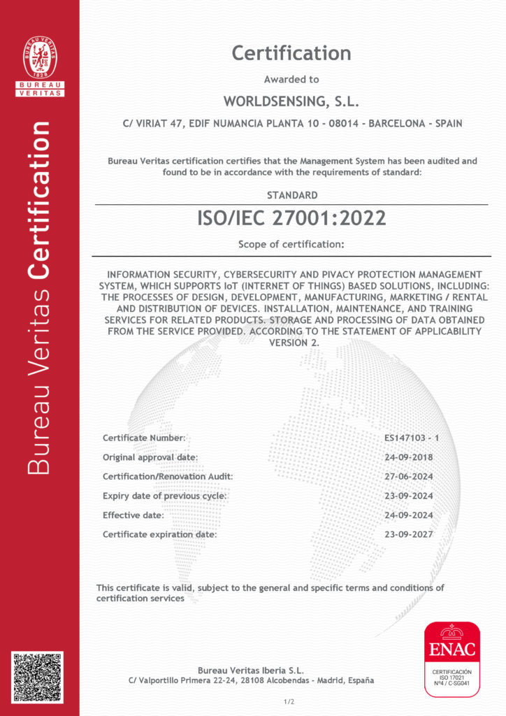 All Worldsensing ISO certifications can be accessed here.